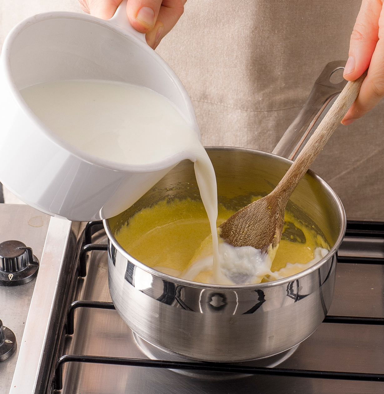 3) Se volete aromatizzare la vostra crema con una "fialetta" a base alcolica o un liquore, aggiungetelo subito nel composto di uova e zucchero e mai nel latte caldo.