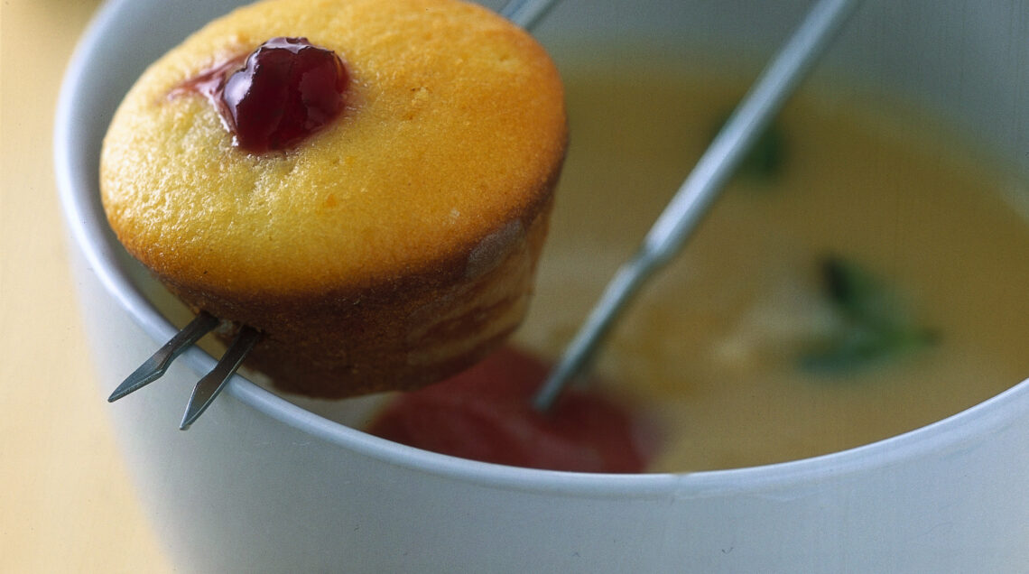 1) Porta in tavola il caramello in un recipiente da fonduta. Accendi i fornelli per tenerlo caldo.