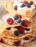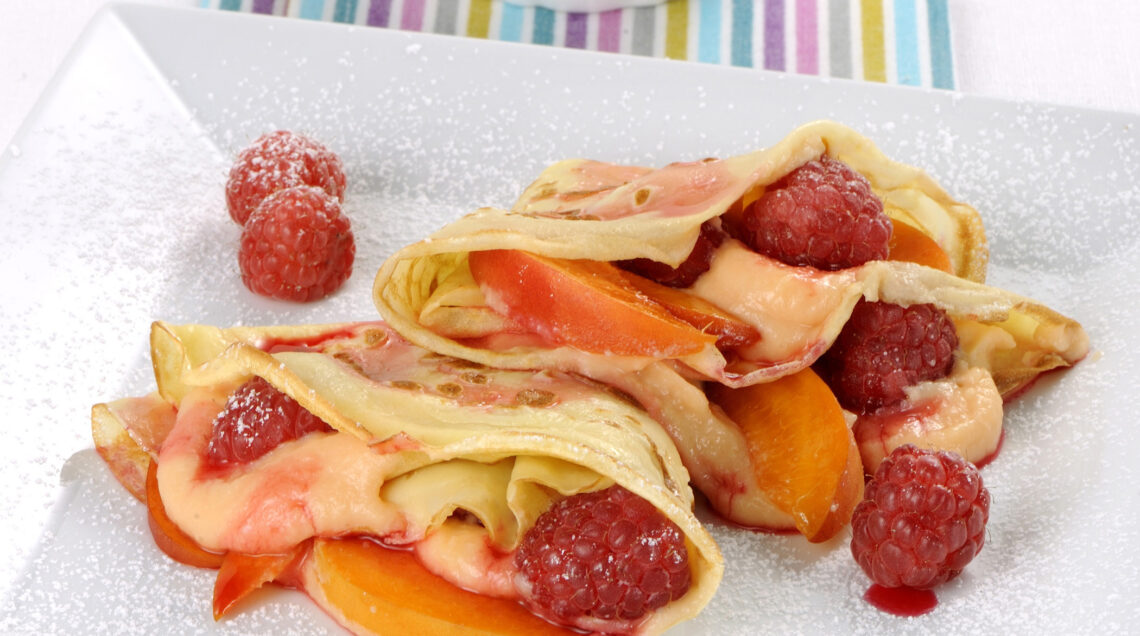 6) Farcisci ogni crepe con la crema pasticciera e con la frutta e ripiegala in 4.
