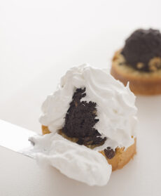 Un dessert natalizio con un cuore di gelato al cioccolato e una cupola di meringa. Da accompagnare con crema inglese