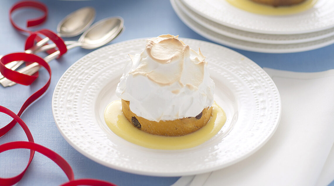 Assomiglia a un igloo questo dessert dal cuore gelato e dal profumo aromatico. Con copertura di meringa, si accompagna con crema inglese