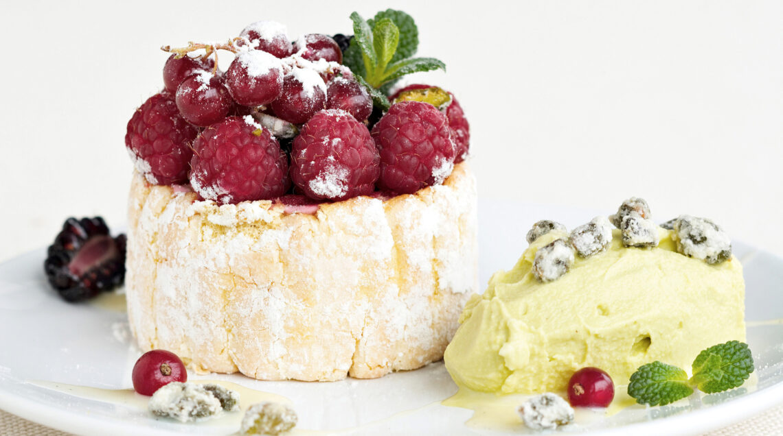 Frutti di bosco e gelato al pistacchio sono il leit motiv di questo dolce al cucchiaio, raffinato ed elegante