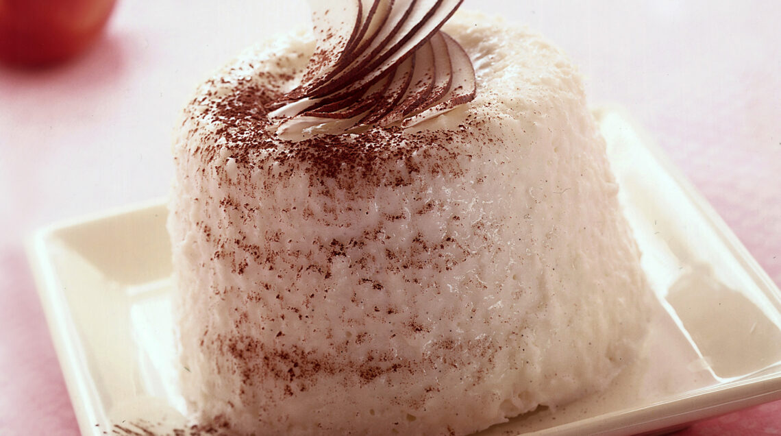 3 Al momento di servire immergete per un istante il fondo dello stampo in acqua calda e capovolgete il dolce sul piatto. Se vi piace, guarnite con fettine di cocco e con una spolverata di cacao.