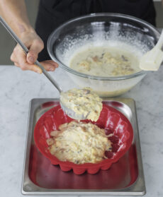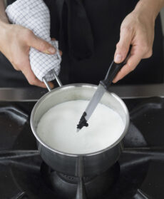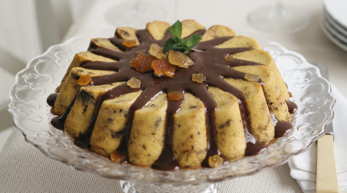 Incorporate il panettone e mescolate. Versate il composto in una stampo da budino e cuocete in forno a 160° per 20 minuti. Lasciate intiepidire il budino, sformatelo e fatelo riposare a per 5 ore a temperatura ambiente.