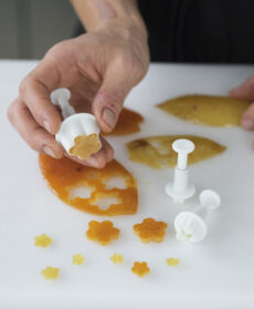 Ricavate dai canditi tanti fiorellini di diverse misure e adagiateli sul budino; servite.