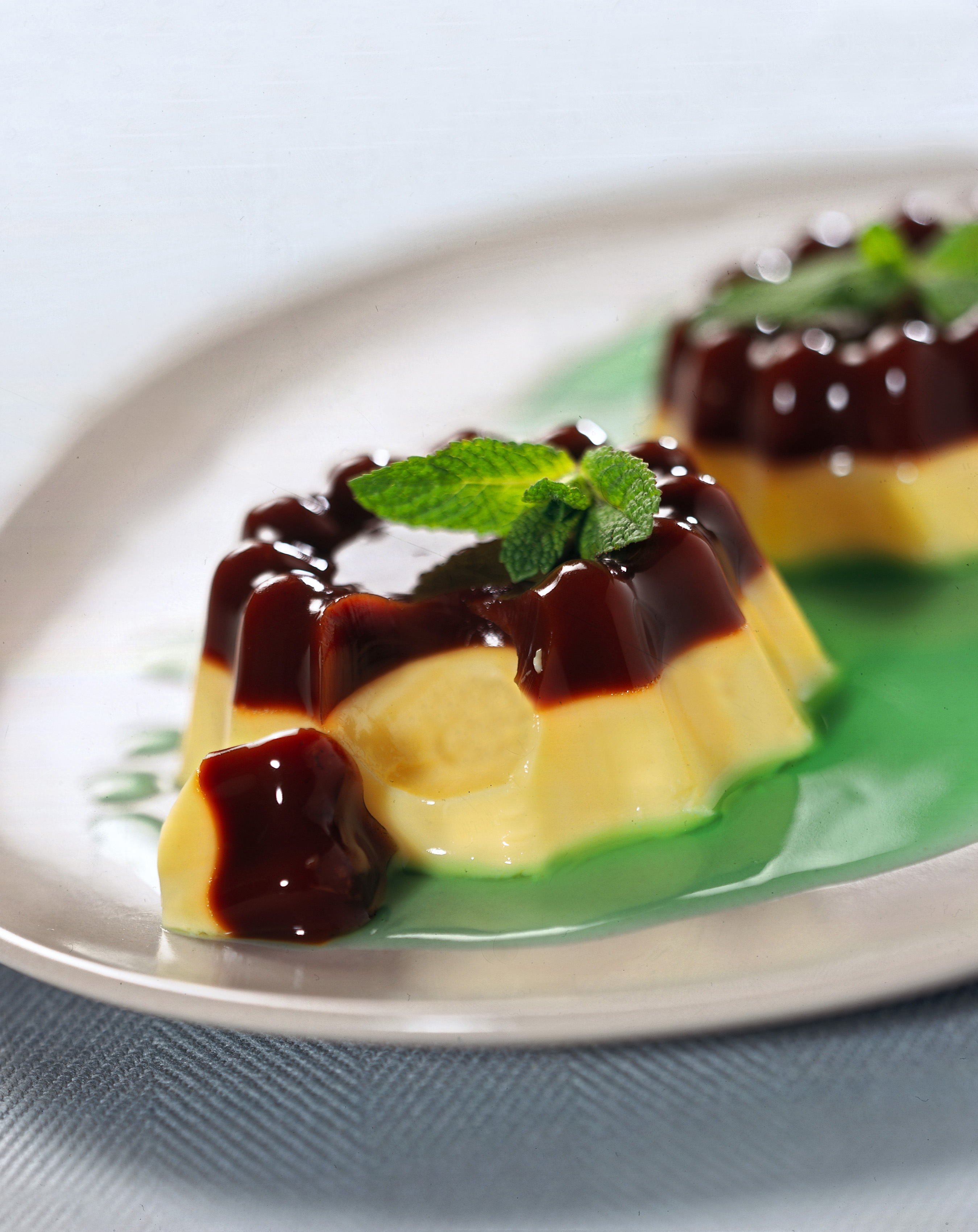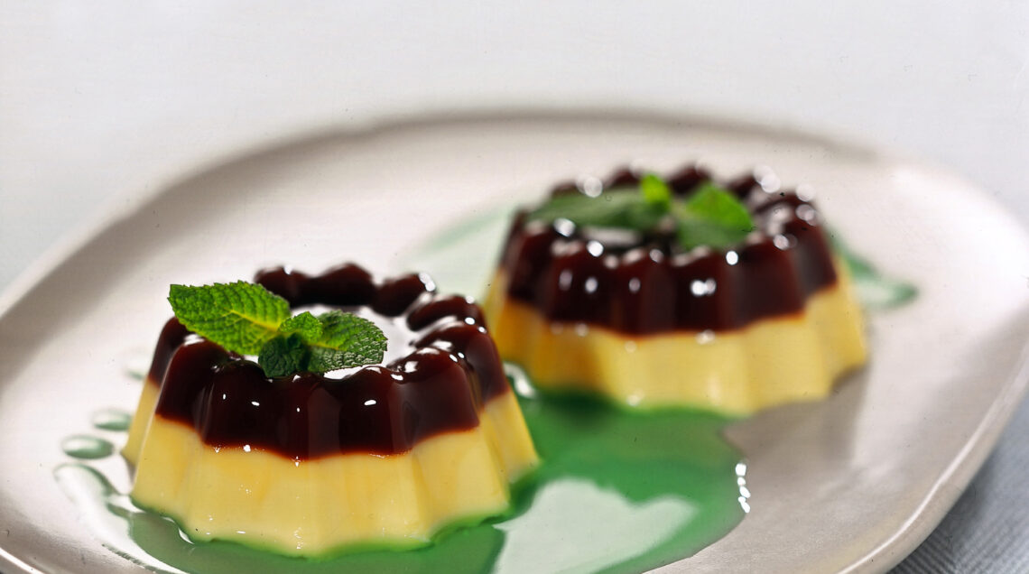 3) Trascorse le 2 ore, sforma i budini sui piattini da dessert e versa sopra ognuno di essi due cucchiaiate di salsa. In alternativa puoi porla in una salsiera, e lasciare che gli ospiti si servano a piacimento secondo la quantità desiderata: il budino bicolore al caffè con salsa alla menta sarà in ogni caso perfetto.