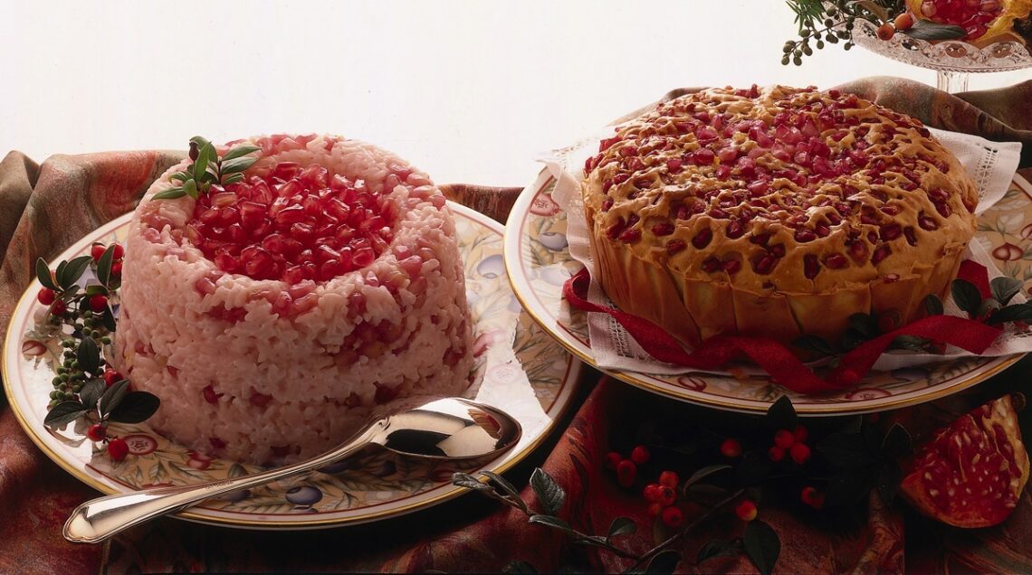 Un dolce insolito, morbido, dolce, profumato e dal colore brillante. È preparato con riso lessato, panna montata, liquore e succo di arancia e chicchi di melagrana. Riposto a rassodare in frigorifero, questo budino si serve al cucchiaio alla fine di un pranzo in famiglia o per una simpatica e colorata merenda.