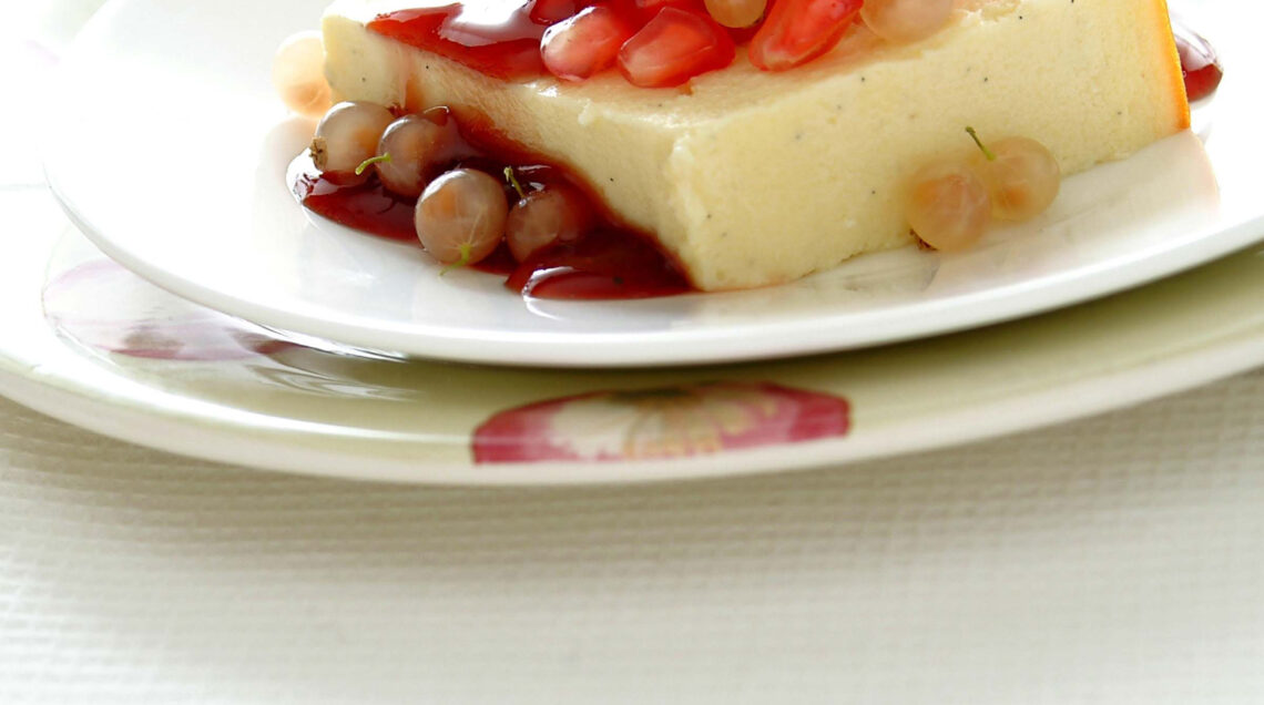 3) Trascorso questo tempo, sforma il cheesecake e taglialo a fette. Distribuiscilo nei piattini da dessert e impreziosiscilo con chicchi di melagrana e con il ribes bianco. Puoi gustare il cheesecake con melagrana e ribes bianco accompagnato da qualche cucchiaiata di gelatina di ribes rosso sciolta a fiamma bassa.