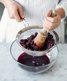 Sistemate sopra una ciotola pulita un colino a maglie fitte, mettetevi l'uva cotta e schiacciatela con un pestello di legno (se non l'avete, un pestacarne) facendo uscire tutto il succo e facendo attenzione a non far passare i semini.