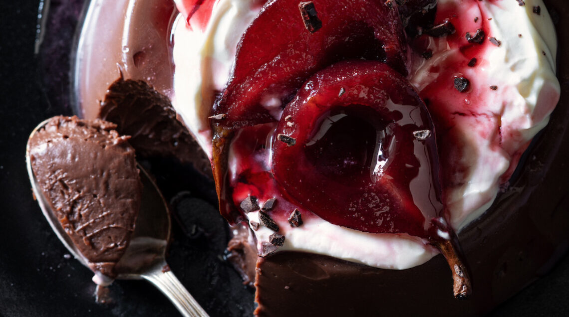 5) Sformate il budino, guarnitelo con la panna allo zenzero, le pere caramellate e lo sciroppo allo zenzero rimasto.