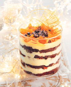 Un dolce al cucchiaio fatto a strati, ora morbidi ora croccanti. A base di frutta e pan di Spagna è un dessert per la tavola di Natale, cremoso e vellutato. Servito in monoporzioni, è preparato con panna montata e liquore all'arancia. Tra i dessert per le feste anche gli spicchi di clementine guarniti al cioccolato e il trifle alle clementine.