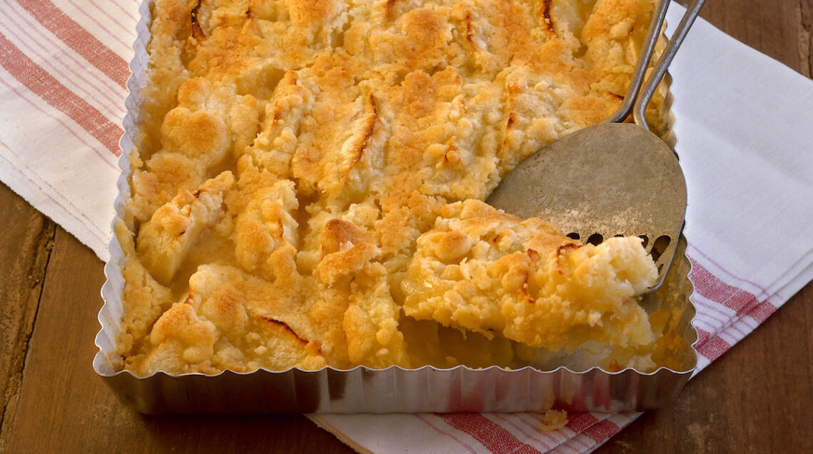 Preparato con le mele e grosse briciole di farina, zucchero e burro, che in cottura diventano croccanti, questo dolce profuma di cannella