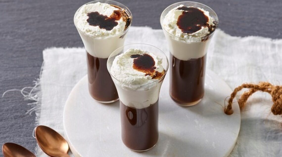 3 Versate la crema in 4 bicchieri o coppette e trasferite in frigorifero. Poco prima di servire, montate la panna con lo zucchero a velo, distribuitela nei bicchieri sopra la crema, formate al centro un incavo e versate lo sciroppo di tamarindo tenuto da parte. Servite subito.