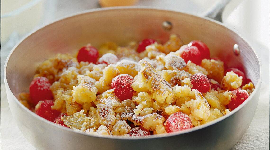 Il composto a base di uova è più ricco di quello di una semplice frittata, quasi una pastella; la farina rende il composto più denso e lo zucchero lo addolcisce, pronto per accogliere la guarnizione alle ciliegie; potete completare il dolce anche con la salsa alle ciliegie. Gli albumi montati rendono il dolce gonfio e soffice. La cottura, tuttavia, non è tanto diversa da quella di una frittata, cucinata in una padella possibilmente antiaderente con la giusta quantità di burro.