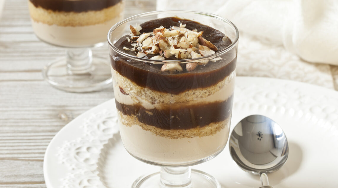 Un dolce al cucchiaio classico, con nocciole e pan di Spagna. Perfetto per chiudere un pranzo in famiglia, abbina l'aroma del caffè al profumo intenso del whisky