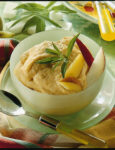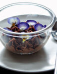Formate con le mousse alcuni spumoncini sui piatti individuali, rifinite con la salsa di cachi, completate con 2 cubi di tortino e 1-2 biscotti e servite.