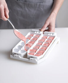 Amalgamate al frullato ottenuto l'albume montato, con movimenti dal basso verso l'alto, per non smontarlo. Versate il composto in due vaschette per il ghiaccio e trasferitele a rassodare in freezer.