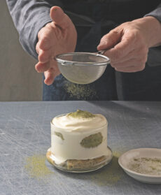 Copriteli con metà della crema e un secondo strato di savoiardi imbevuti, distribuite sopra la crema rimasta e trasferite in frigo a raffreddare per 2 ore circa. Spolverizzate generosamente con la polvere di tè matcha rimasta subito prima di servire.