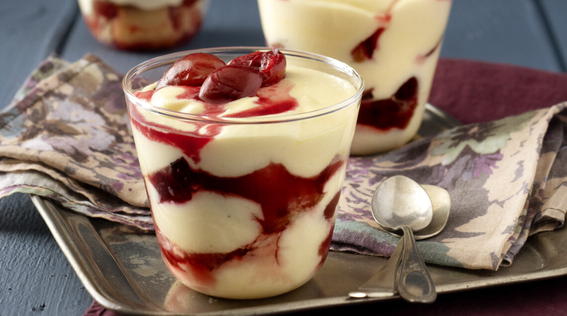 Crema di mascarpone, frutti selvatici e zucchero di canna. Un dolce al cucchiaio per l'estate che profuma di cannella