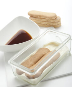 Stendete uno strato di crema di circa 1 cm di spessore, in una pirofila rettangolare a bordi alti di 18 cm di lunghezza. Sistemate sopra uno strato di savoiardi, inumiditi nel caffè mescolato con il restante rum, e premuti tra i palmi delle mani. Coprite con un altro strato di crema, proseguite con savoiardi e terminate con la crema.