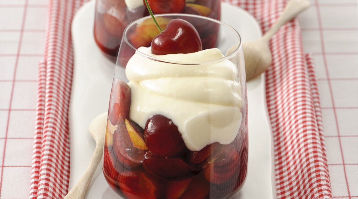 Una zuppetta preparata con frutti pregiati, le ciliegie di Vignola, insaporite in un mix di vino bianco e zucchero profumato con chiodi di garofano e poi servite con una morbida e soffice mousse di panna e cioccolato bianco. Il dessert si fa raffinato, per un dopo cena tra amici o una merenda del tardo pomeriggio.