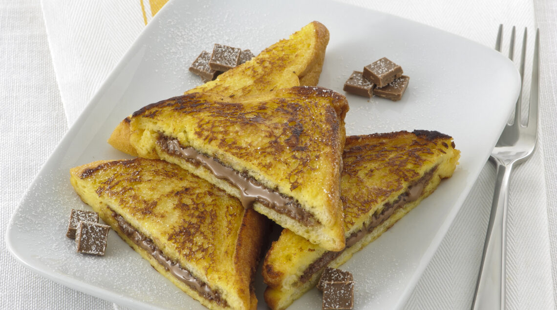 Una variante golosa della tradizionale ricetta salata. Preparato con pane in cassetta rosolato nel burro, è farcito con un ripieno al cioccolato e servito con zucchero a velo