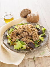 2 Intanto, mescolate le farine e una presa di sale. Sciogliete il burro a fuoco dolce. Montate gli albumi con le fruste elettriche aggiungendo a poco a poco lo zucchero a velo (dovrete ottenere una neve morbida, non troppo asciutta). Incorporateli alla miscela di farine e poi unite il burro a filo.
