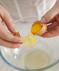 Separa i tuorli dagli albumi e unisci i primi al contenuto della ciotola. Fai cadere gli albumi in una seconda ciotola e aggiungi un pizzico di sale.