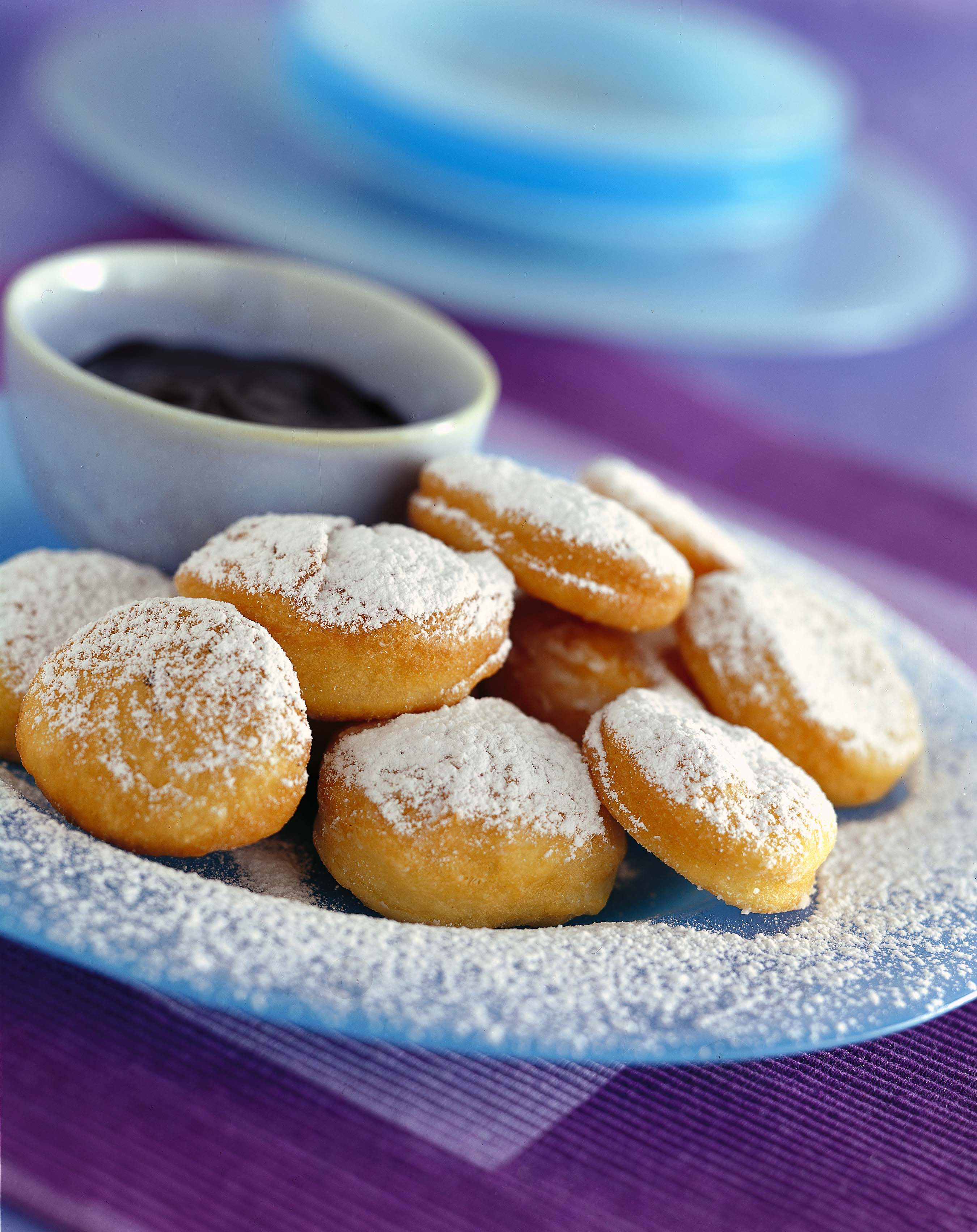 Questi bomboloncini sono la versione mignon dei bomboloni toscani e dei krapfen di origine austriaca. Noi te li proponiamo vuoti, accompagnati da una crema al cioccolato. Ma se vuoi, puoi farcirli con crema pasticciera, oppure confettura.