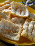 Chiacchiere, frappe, bugie, cenci crostoli, gale, tanti nomi, diversi di regione in regione, per il dolce più amato del Carnevale, perfetto fritto o cotto al forno, per una versione più leggera, ma ugualmente golosa. Infornatele a metà altezza controllando che non prendano troppo colore.