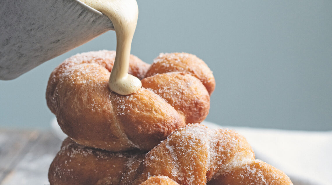 Abbiamo interpretato la pasta da krapfen in una nuova forma golosa e divertente, non solo a Carnevale. Da accompagnare con una deliziosa salsa che profuma di Cognac
