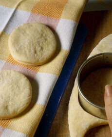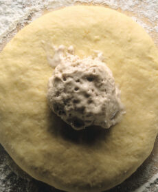 Riprendete la pasta, formate un salsicciotto di 5 cm di diametro e dividilo in porzioni del peso di 30-40 g ciascuna. Fate rotolare sotto una mano ciascuna porzione, in modo da ottenere delle palline. Mettetele su teli infarinati, schiacciatele leggermente, infarinatele anche in superficie e fatele lievitare per circa mezz'ora.