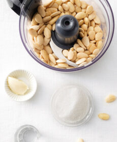 Per la farcia delle rghaÏf aux amandes, frulla le mandorle nel mixer con l'acqua di fiori d'arancio, lo zucchero e il burro. Suddividi il composto in tante porzioni quante sono le frittelle.