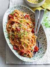 4) Stendi la pasta con un mattarello e dopo aver ricavato una sfoglia sottile tagliala in piccoli triangoli, utilizzando uno stampino oppure un coltello molto affilato.