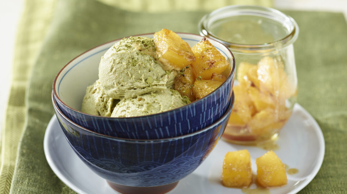 Il tè matcha è il pregiatissimo tè verde usato nella tradizionale cerimonia del tè in Giappone. Cresce lontano dal sole e le foglie sono raccolte a mano. Sono quindi cotte a vapore, fatte essiccare e infine macinate a pietra per ottenere la finissima polvere. Per preservarne il verde intenso e brillante, la polvere di tè si conserva lontano dalle fonti di luce e in assenza di ossigeno.