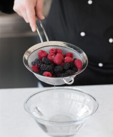 2) Se utilizzate i frutti di bosco freschi metteteli in un colino e lavateli velocemente sotto il filo dell'acqua corrente, poi scolateli bene e raccoglieteli in una casseruolina; se invece utilizzate quelli surgelati raccoglieteli direttamente nel recipiente: non è necessario farli prima scongelare.