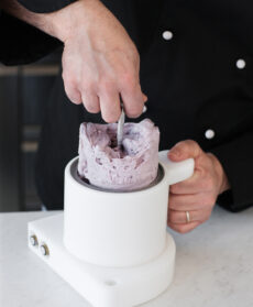 7) Quando il composto si è consolidato e trasformato in un gelato cremoso, estraetelo dalla gelatiera e distribuitelo nelle coppe.