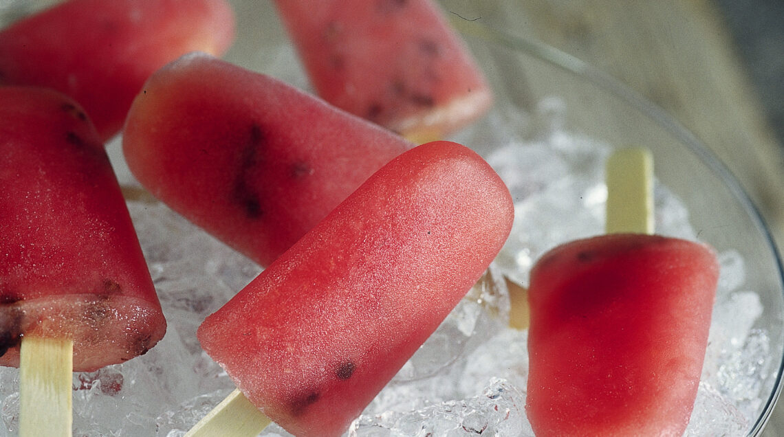 2) Versa il composto di anguria e cioccolato in 6 bicchierini da liquore alti e stretti, infilando in ciascuno un bastoncino di legno al centro (naturalmente, se preferisci, puoi anche usare le apposite formine per ghiaccioli), rimetti i ghiaccioli all'anguria e cioccolato in freezer e toglili soltanto al momento di servirli.