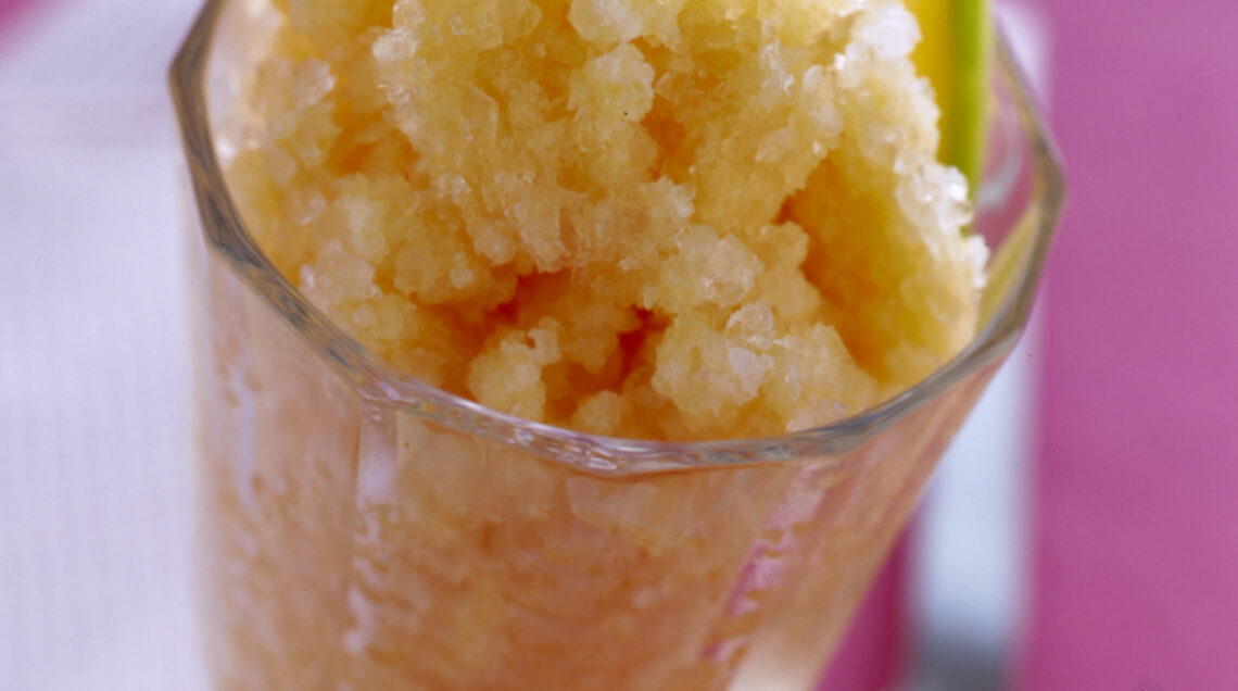 1) Per servire la granita di melone, distribuiscila nei bicchieri appena tolti dal freezer.