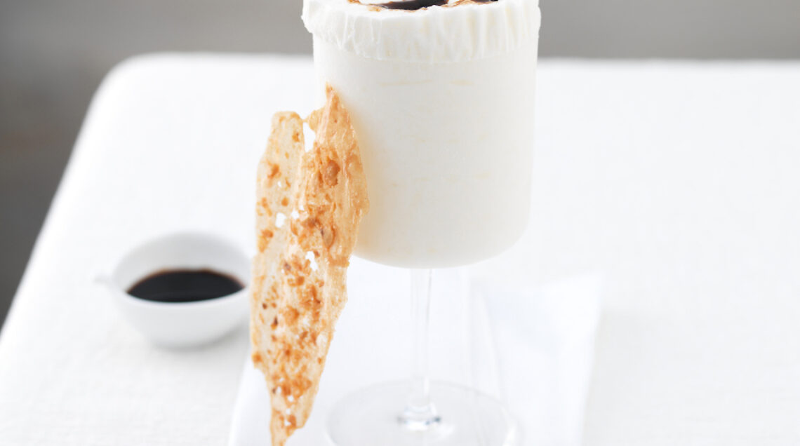 Una mousse sorprendente preparata con panna, Parmigiano e zucchero per un raffinato dessert al cucchiaio