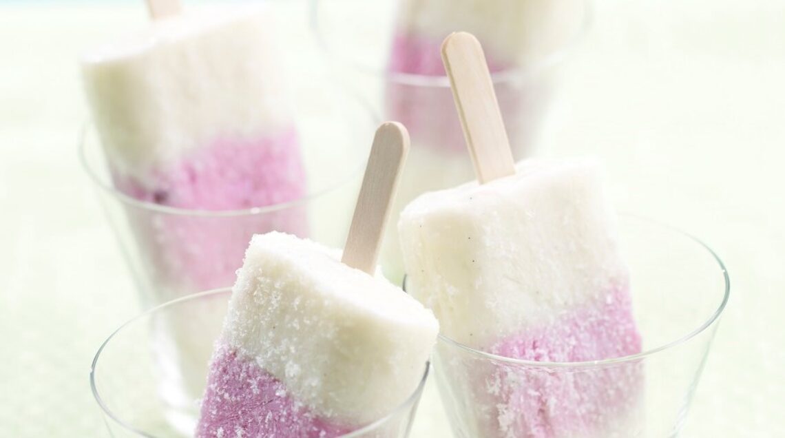 3 Mettete gli stampini in freezer e dopo 1 ora, quando lo yogurt comincia a rassodarsi, inserite gli stecchi di legno. Mettete di nuovo in freezer e fate riposare per almeno 6 ore.