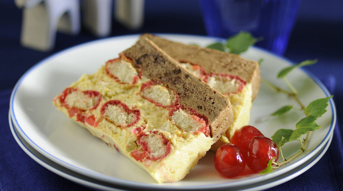 2) Fai seguire uno strato di savoiardi che hai provveduto a bagnare nell'Alchermes e continua la composizione con la crema al torrone, di nuovo i savoiardi al liquore e infine la crema dove hai mescolato i canditi.