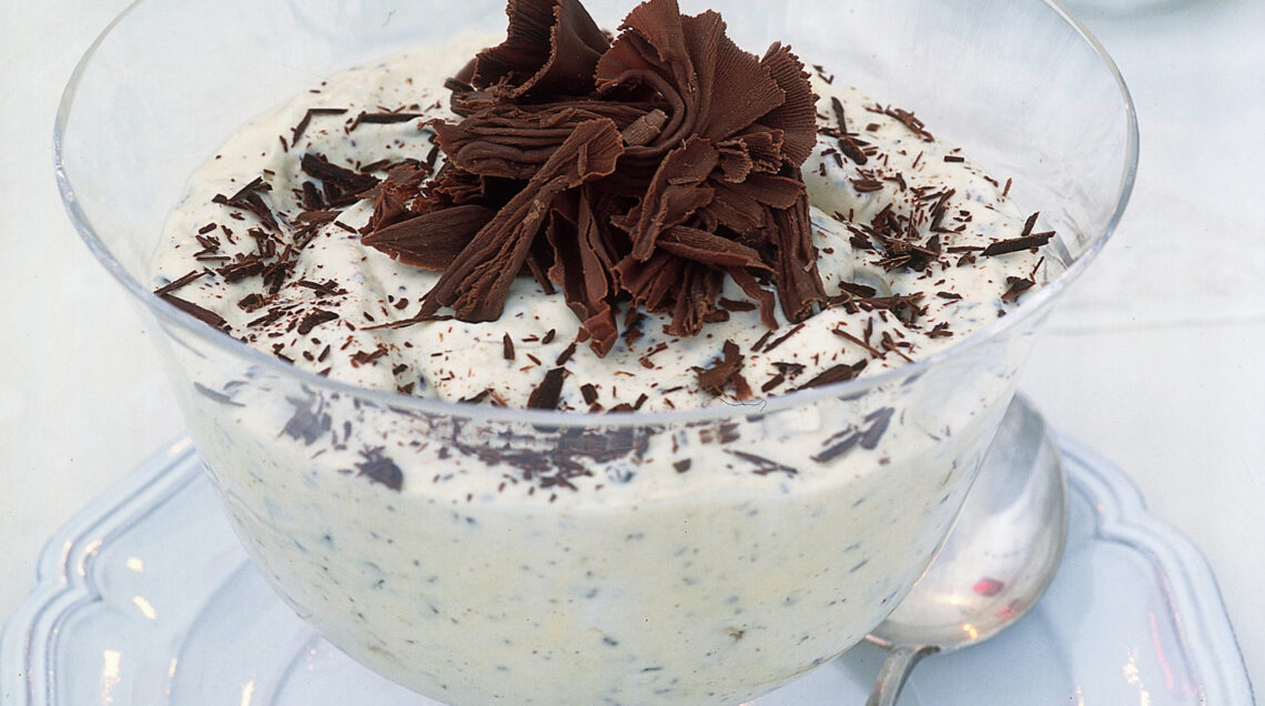 2) Lascia raffreddare lo zabaione lontano dal fuoco. Nel frattempo, spezzetta il croccante e sbriciola le meringhe. Ricava inoltre dei riccioli di cioccolato dalla tavoletta di gianduia, tritando il rimanente insieme con il cioccolato fondente. Monta la panna, incorporala allo zabaione, miscela i 2 cioccolati, le meringhe ed il croccante.
