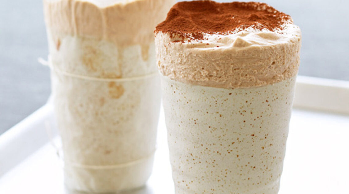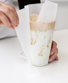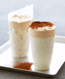 6) Sforma il soufflé gelato. Togli i bicchieri dal congelatore e trasferiscili in frigo 10 minuti prima di servire ma togli la striscia di carta solo all’ultimo momento.
