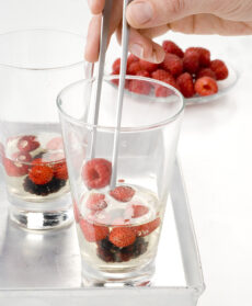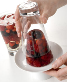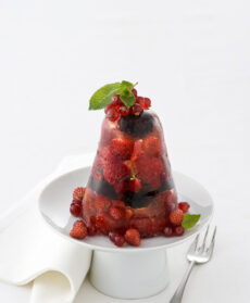 1) Aggiungi un altro centimetro di gelatina e sistema di nuovo in frigorifero: dopo qualche minuto riprendilo poi metti al centro di esso una mora, copri di gelatina e metti di nuovo in frigorifero. Prosegui con uno strato di fragoline, di gelatina e infine di lamponi.