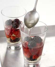 3) Al momento di servire, sforma i bicchieri ai frutti misti e decorali con altra frutta.
