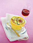 1) Metti a bagno la gelatina in acqua fredda per 10 minuti. Lava i fichi, sbucciane i 2/3 e frullali con il rum; taglia a fettine i fichi non sbucciati rimasti.