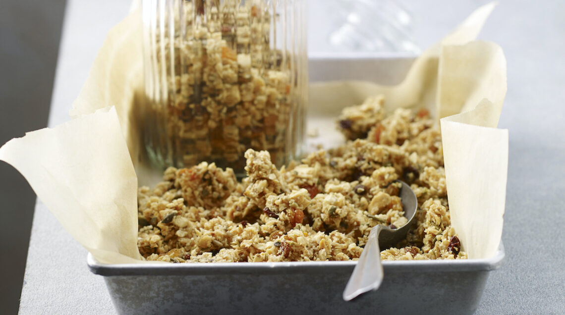 5) Conservate la granola in barattoli (o in una scatola di latta), in un luogo fresco, buio e asciutto. Potete gustarla nel latte o nello yogurt, al posto dei cereali, oppure usarla per guarnire un gelato.