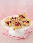 1) Mentre le fette di ananas sono in forno, sciogli a bagnomaria il burro e usalo per spennellare 12 rettangoli di 12x18 centimetri che hai ricavato dalla pasta fillo. In una terrina sbriciola i biscotti in pezzetti molto minuti.