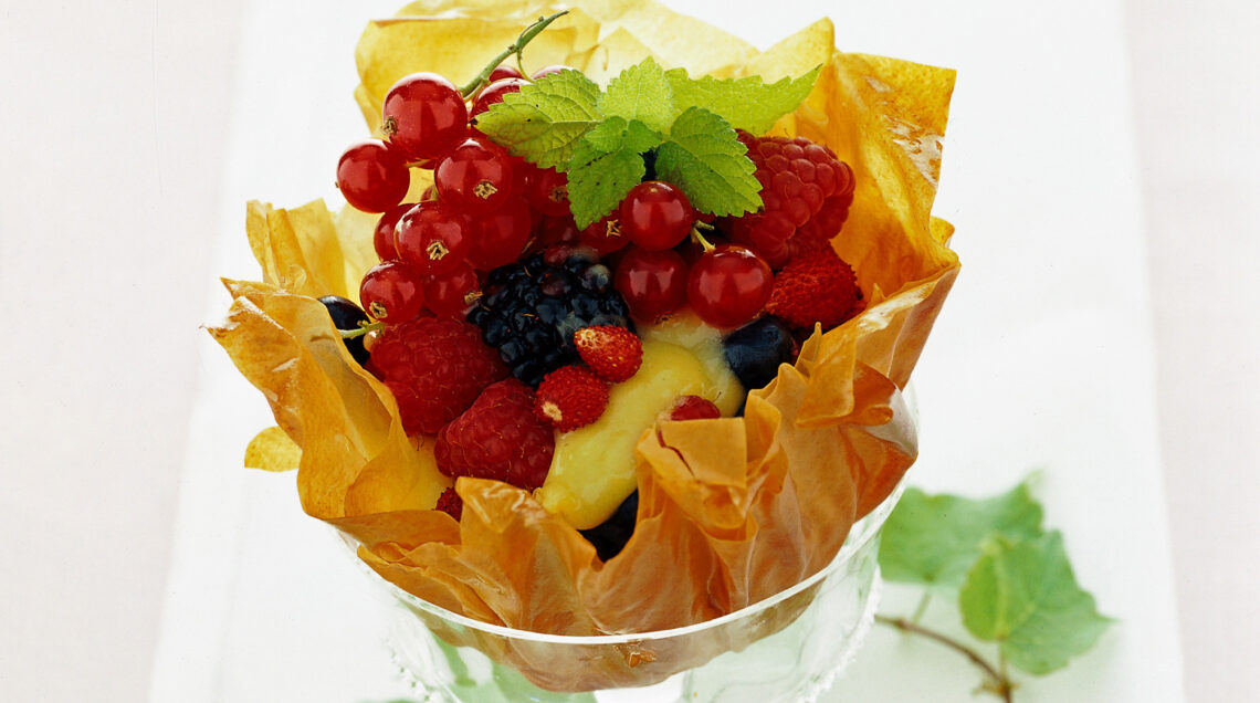 Questo dolce è una vera e propria sorpresa: nelle ciotole croccanti di pasta fillo che profumano di burro fuso troverete una deliziosa crema al lime su cui versare la composta di frutti di bosco al limoncello. Un dessert elegante per le sere d'estate.